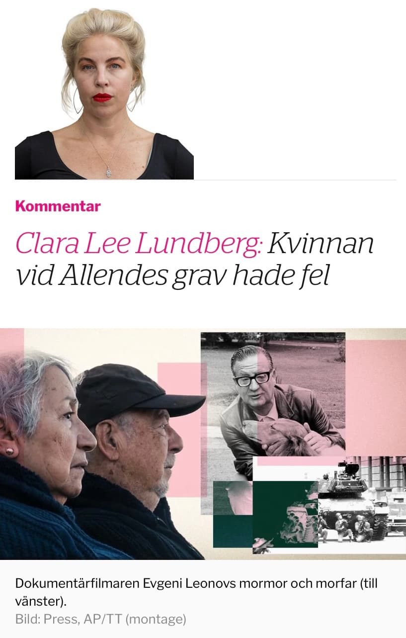 I samband med 50-årsminnet av militärkuppen i Chile så uppmärksammade Dagens ETC min dokumentärfilm "Vi var de som åkte". Den fina artikeln går att läsa på etc.se Filmen har tidigare bl.a. visats på Museum of memory and human rights i Santiago, på tv i Chile, Västerås filmfestival, Panoramica - Stockholms Latinamerikanska filmfestival, Chile forum 50 år samt på biografer i Stockholm. Just nu går det att streama filmen på Artdoc media!